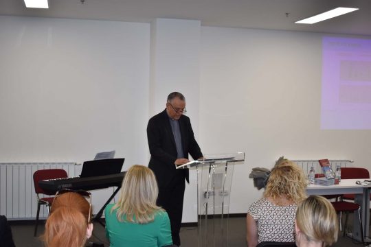 Okupljenima se obratio rektor Tanjić, pozdravivši sve prisutne u ime cijele akademske zajednice i čestitajući Međunarodni dan sestrinstva svim okupljenima, a autorima na ovom izvanrednom izdanju. „Odjel za sestrinstvo najveći je naš Odjel. Ponosni smo na sve naše studente i naše profesore koji su podnijeli veliki teret zadnje dvije pandemijske godine. I u tom teškom vremenu stvorena je ova knjiga oko koje smo se danas okupili. Ponosni smo na autore Vesnu Mijoč i Marina Čarga koji su se odvažili i osmislili prvi udžbenik na našem Odjelu za sestrinstvu i vjerujemo da će on biti sastavni dio knjižnice svakog od naših studenata sestrinstva“- rekao je rektor Tanjić.