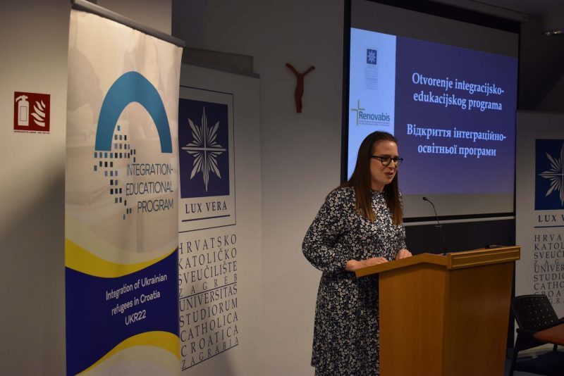 Uvodno se obratila i gđa Marija Meleško, predsjednica Ukrajinske zajednice Grada Zagreba. Zahvalila je Hrvatskom katoličkom sveučilištu te je zaželjela polaznicima uspješnu i proaktivnu nastavu. Naglasila je da se radi o Programu koji će polaznicima omogućiti uključivanje u novu sredinu i dostojanstveni život uz povratak na svoje poslovne pozicije koje su uspješno obnašali u Ukrajini.