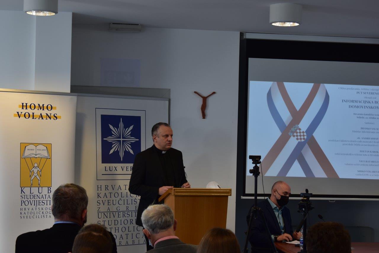 U utorak, 22. ožujka 2022. održan je okrugli stol „Informacijska bojišnica u Domovinskom ratu“. Treći po redu okrugli stol dio je projekta Put suverenosti koji suorganiziraju Odjel za povijest Hrvatskog katoličkog sveučilišta, Hrvatski memorijalno-dokumentacijski centar Domovinskog rata, Klub studenata povijesti Hrvatskog katoličkog sveučilišta „Homo volans“ i Hrvatska akademska zajednica Fakulteta političkih znanosti Sveučilišta u Zagrebu.