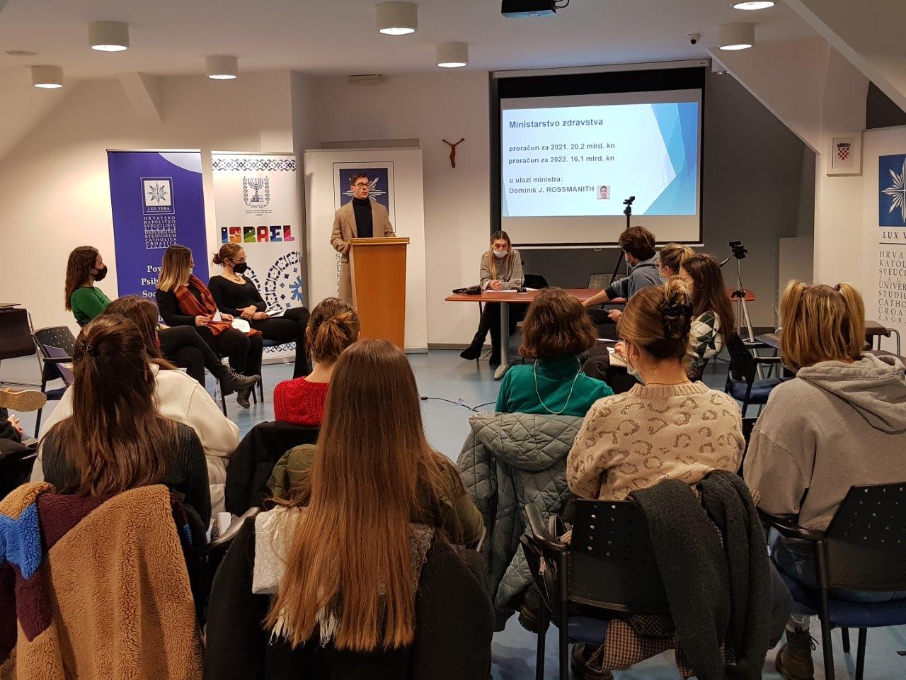 U srijedu, 26. siječnja 2022. studenti druge godine sveučilišnog diplomskog studija sociologije Hrvatskog katoličkog sveučilišta sudjelovali su u studentskoj debati o državnom proračunu. Naime, kao što znamo, izglasavanje državnog proračuna u Hrvatskom saboru jedan je od najvažnijih financijskih događaja koji je značajno popraćen i od strane medija. U sklopu kolegija Osnove proračuna studenti su stekli teoretska i praktična znanja o postupku donošenja državnog proračuna, a zatim su ta znanja na ovoj studentskoj radionici praktično i primijenili.