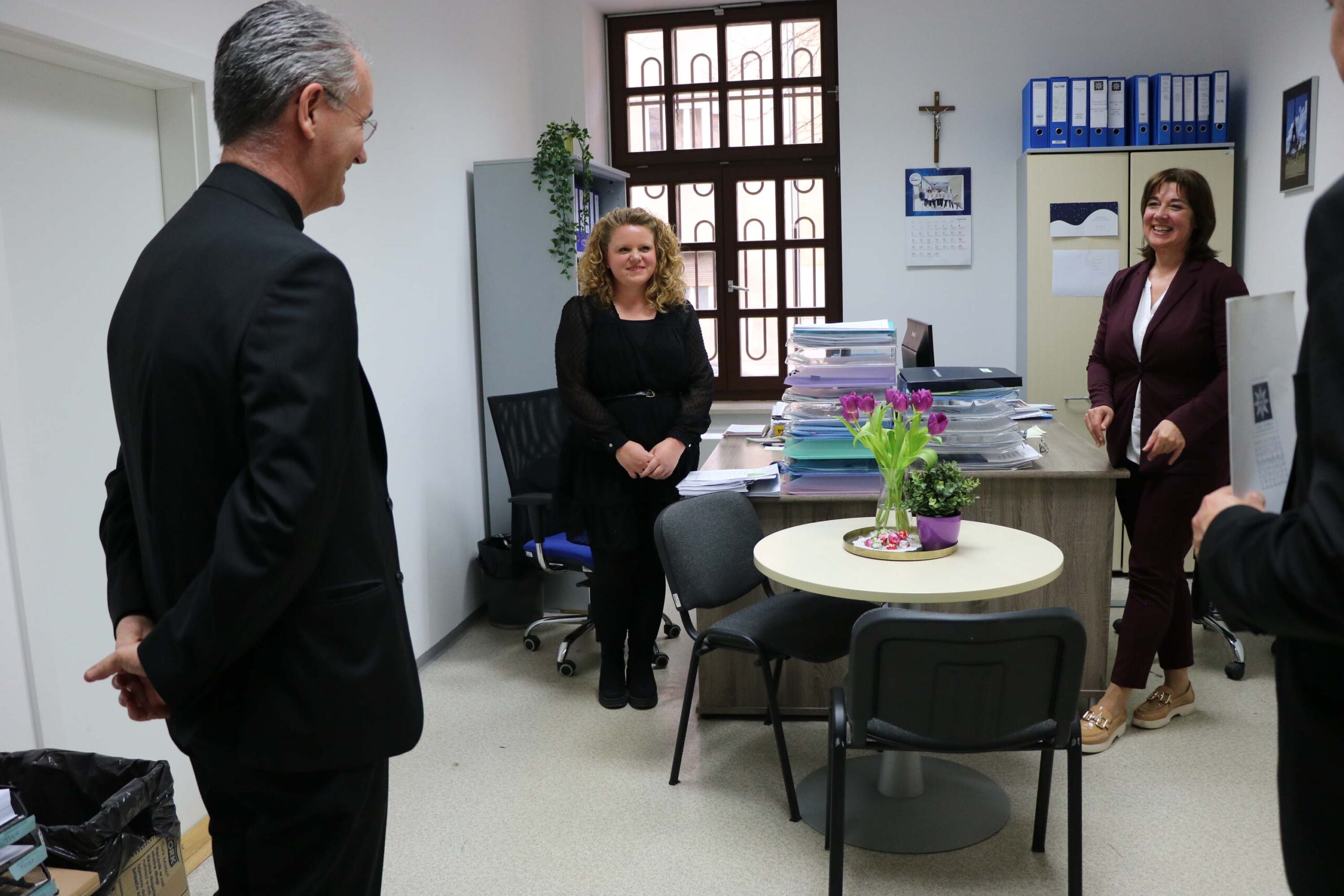 Mons. Kutleša susreo se potom sa širim rektorskim kolegijem i članovima Senata Uslijedio je obilazak ureda, laboratorija i kabineta pri čemu se mons. Kutleša pozdravio i porazgovarao s našim nastavnicima i zaposlenicima te sa velikim zanimanjem sudjelovao u razgovoru o svakodnevnim aktivnostima važnima za funkcioniranje Sveučilišta.