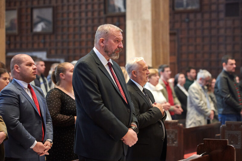 Sveto misno slavlje u crkvi Svetog Antuna Padovanskog na Svetom Duhu, kojem su prisustvovali prorektori, pročelnici, profesori, djelatnici i studenti Hrvatskog katoličkog sveučilišta, predvodio je mons. Ivan Šaško, izaslanik zagrebačkog nadbiskupa mons. Dražena Kutleše, pomoćni biskup zagrebački i prvi rektor HKS-a, u koncelebraciji s rektorom Hrvatskog katoličkog sveučilišta prof. dr. sc. Željkom Tanjićem, doc. dr. sc. Krunoslavom Novakom, generalnim tajnikom Hrvatske biskupske konferencije, prof. dr. sc. Antom Crnčevićem, prorektorom za kvalitetu, identitet i poslanje Sveučilišta, vlč. Branimirom Jagodićem, sveučilišnim kapelanom, vlč. Filipom Šešekom, povjerenikom zagrebačke nadbiskupije za mlade, pastoral športaša i koordinatorom dušobrižništva za studente u Zagrebu, fra Zlatkom Vlahekom, prof. dr. sc. Jerkom Valkovićem sa Sveučilišnog odjela za komunikologiju te doc. dr. sc. Odilonom Singboom s Katedre za teologiju.